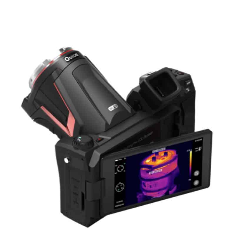 Tvåhandskamera för termografen med 110 000 pixlar, autofokus, 25°-objektiv och 45 mK-känslighet.
