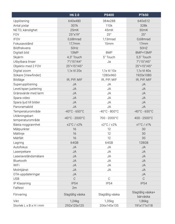 • Dubbla digitalkameror med automatisk anpassning mellan IR och digital bild